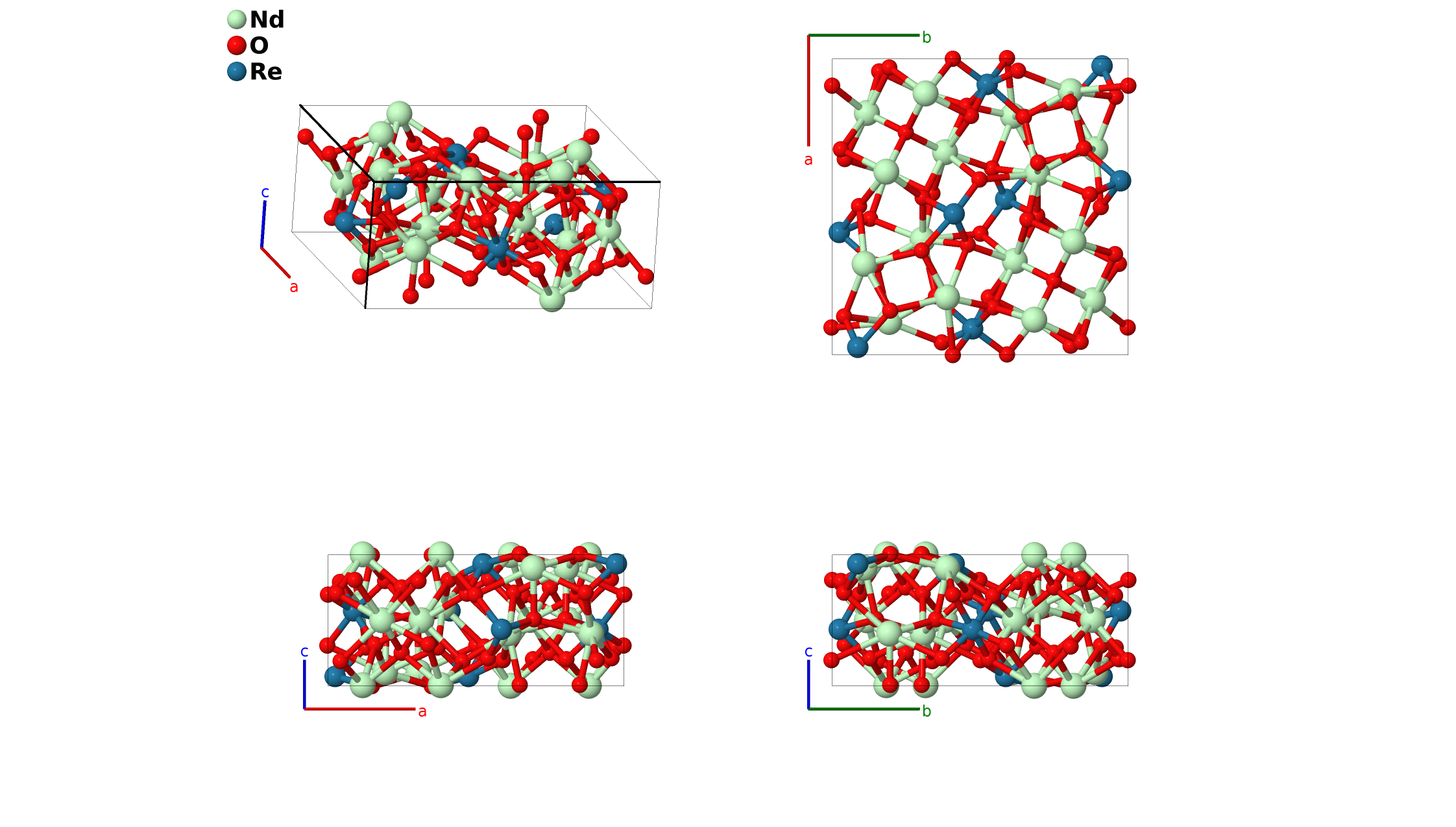 • K.-A. Wilhelmi, E. Lagervall, and O. Muller, On the Crystal Structure of Nd$_{4}$Re$_{2}$O$_{11}$, Acta Chem. Scand. 24, 3406–3408 (1970), doi:10.3891/acta.chem.scand.24-3409.