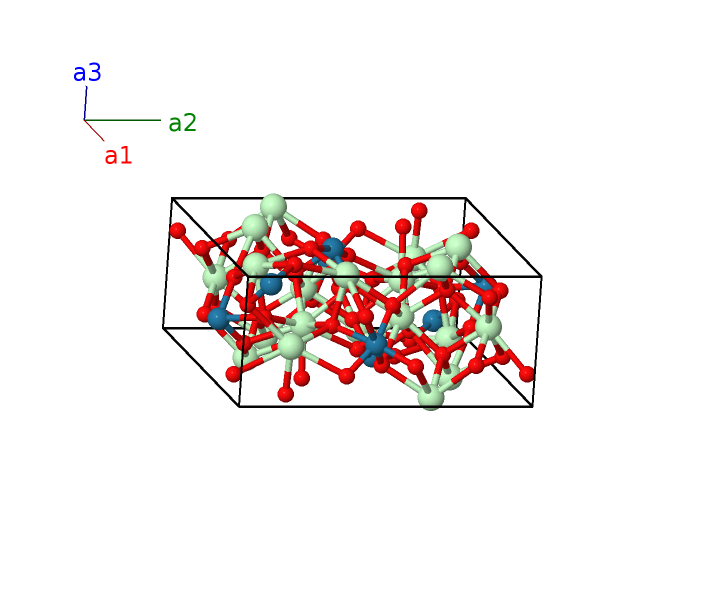 $\mathbf{B_{3}}$ = $\frac{1}{4} \, \mathbf{a}_{1}+\frac{1}{4} \, \mathbf{a}_{2}+\frac{3}{4} \, \mathbf{a}_{3}$ = $\frac{1}{4}a \,\mathbf{\hat{x}}+\frac{1}{4}a \,\mathbf{\hat{y}}+\frac{3}{4}c \,\mathbf{\hat{z}}$ (2b) O II
