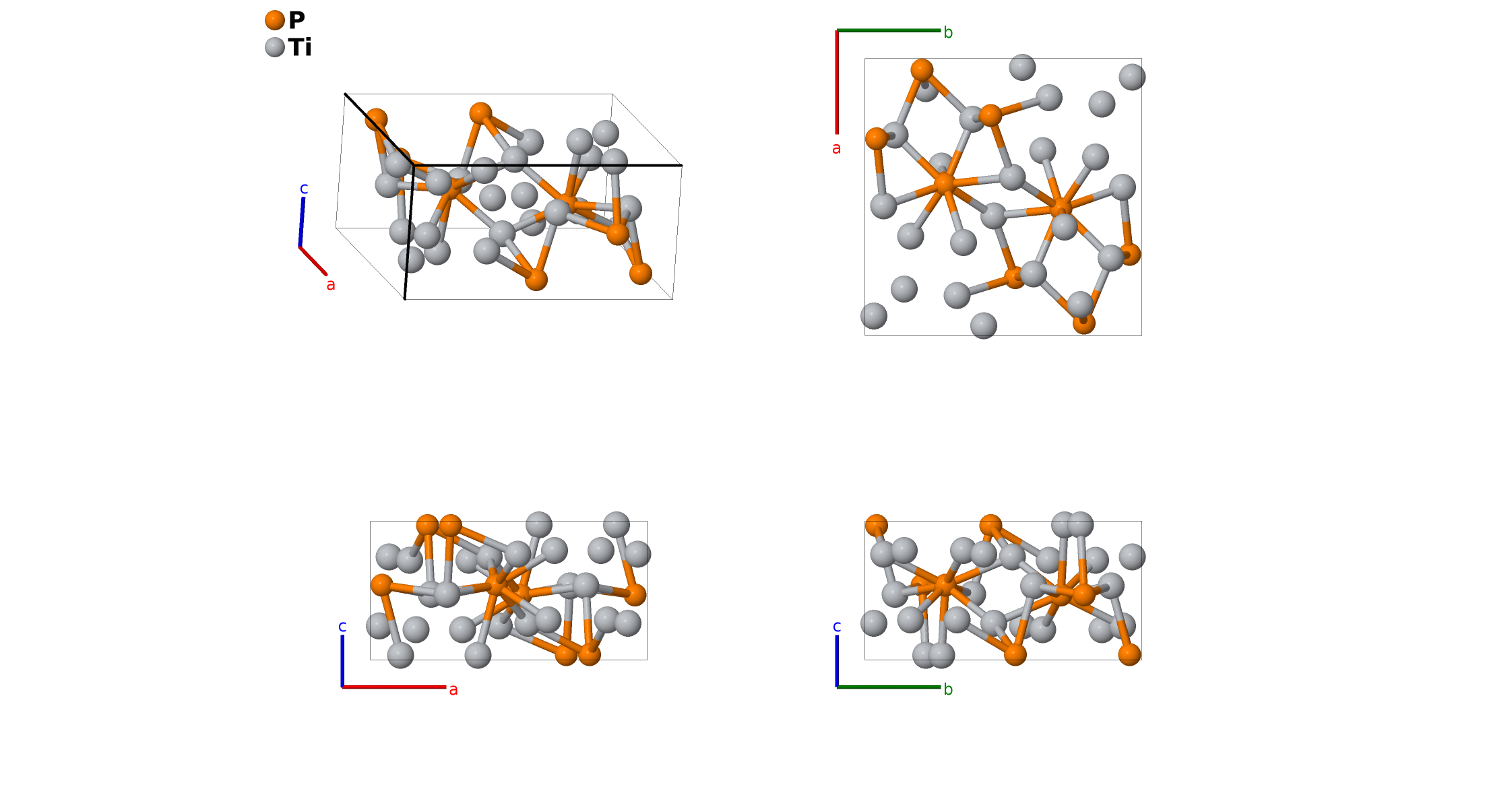 $\mathbf{B_{32}}$ | = | $- \left(y_{4} - \frac{1}{2}\right) \, \mathbf{a}_{1}+x_{4} \, \mathbf{a}_{2}- \left(z_{4} - \frac{1}{2}\right) \, \mathbf{a}_{3}$ | = | $- a \left(y_{4} - \frac{1}{2}\right) \,\mathbf{\hat{x}}+a x_{4} \,\mathbf{\hat{y}}- c \left(z_{4} - \frac{1}{2}\right) \,\mathbf{\hat{z}}$ | (8g) | Ti III |