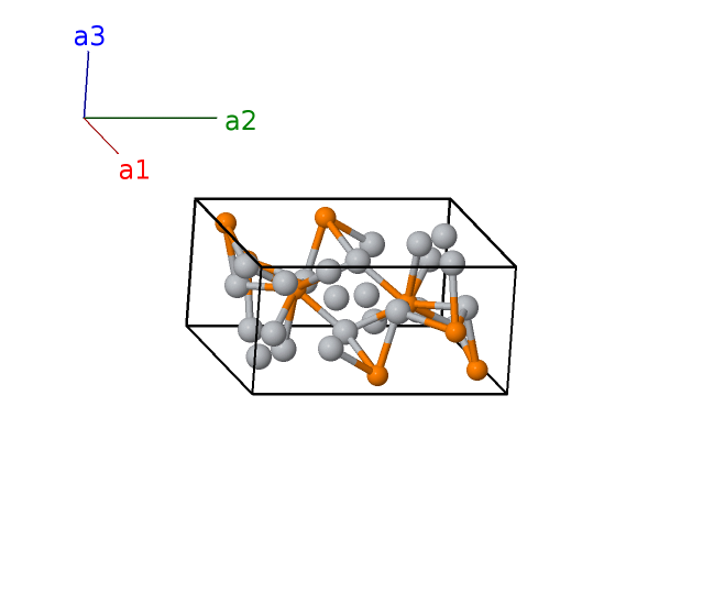 $\mathbf{B_{19}}$ | = | $- y_{3} \, \mathbf{a}_{1}+\left(x_{3} + \frac{1}{2}\right) \, \mathbf{a}_{2}+\left(z_{3} + \frac{1}{2}\right) \, \mathbf{a}_{3}$ | = | $- a y_{3} \,\mathbf{\hat{x}}+a \left(x_{3} + \frac{1}{2}\right) \,\mathbf{\hat{y}}+c \left(z_{3} + \frac{1}{2}\right) \,\mathbf{\hat{z}}$ | (8g) | Ti II |