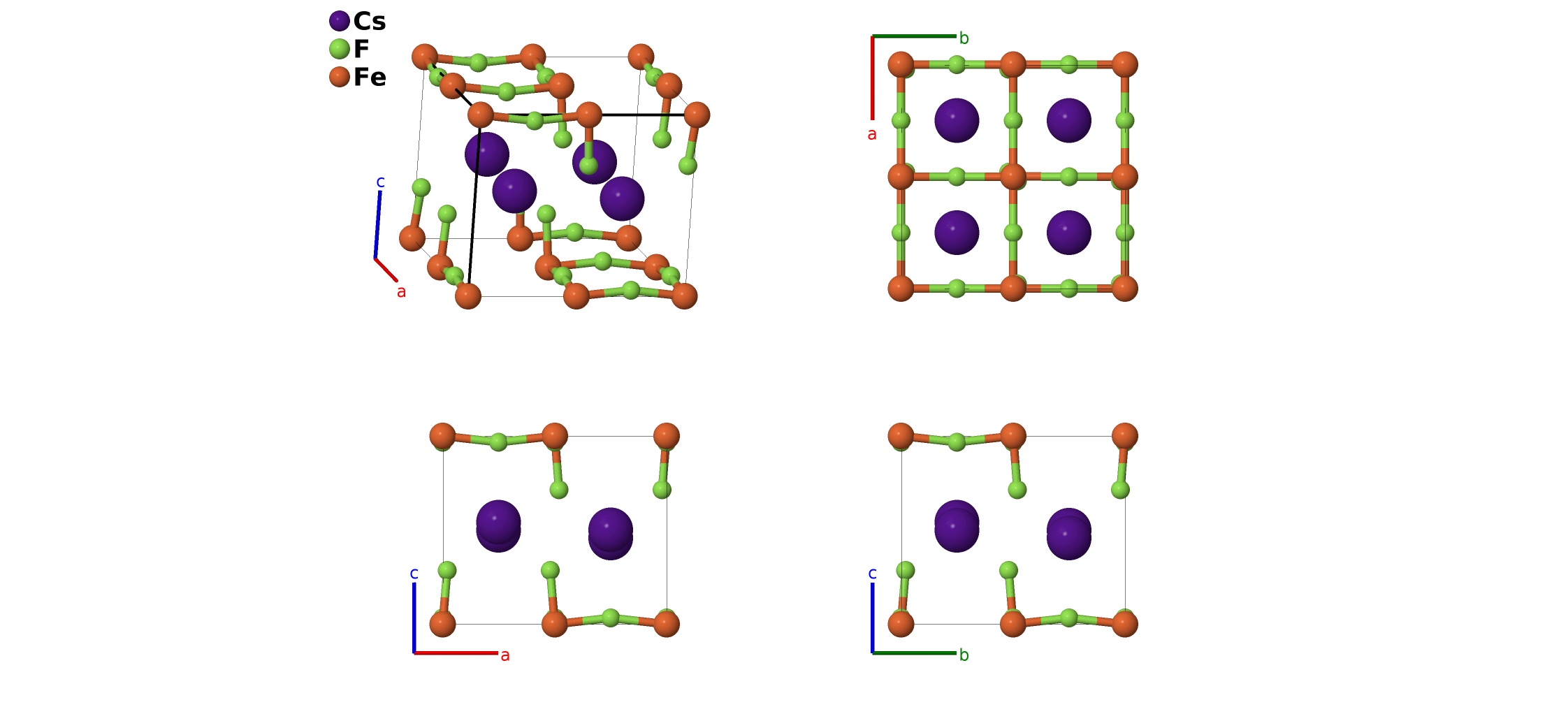 $\mathbf{B_{2}}$ | = | $\frac{1}{4} \, \mathbf{a}_{1}+\frac{3}{4} \, \mathbf{a}_{2}+\frac{1}{2} \, \mathbf{a}_{3}$ | = | $\frac{1}{4}a \,\mathbf{\hat{x}}+\frac{3}{4}a \,\mathbf{\hat{y}}+\frac{1}{2}c \,\mathbf{\hat{z}}$ | (2b) | Cs I |