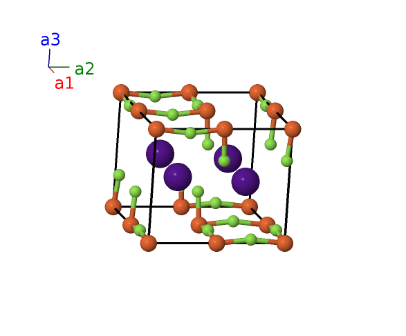 $\mathbf{B_{8}}$ | = | $\frac{1}{2} \, \mathbf{a}_{2}$ | = | $\frac{1}{2}a \,\mathbf{\hat{y}}$ | (4d) | Fe I |