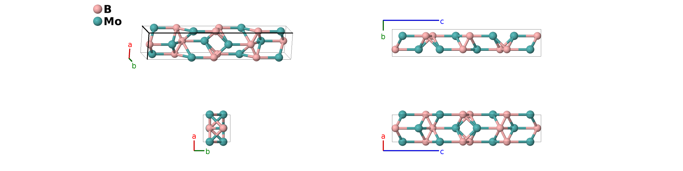 $\mathbf{B_{6}}$ | = | $z_{2} \, \mathbf{a}_{1}+\left(z_{2} + \frac{1}{4}\right) \, \mathbf{a}_{2}+\frac{3}{4} \, \mathbf{a}_{3}$ | = | $\frac{1}{2}a \,\mathbf{\hat{x}}+\frac{1}{4}a \,\mathbf{\hat{y}}+c \left(z_{2} - \frac{1}{4}\right) \,\mathbf{\hat{z}}$ | (8e) | Mo I |