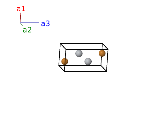 $\mathbf{B_{2}}$ | = | $\frac{3}{4} \, \mathbf{a}_{1}+\frac{3}{4} \, \mathbf{a}_{2}- z_{1} \, \mathbf{a}_{3}$ | = | $\frac{3}{4}a \,\mathbf{\hat{x}}+\frac{3}{4}a \,\mathbf{\hat{y}}- c z_{1} \,\mathbf{\hat{z}}$ | (2c) | Cu I |