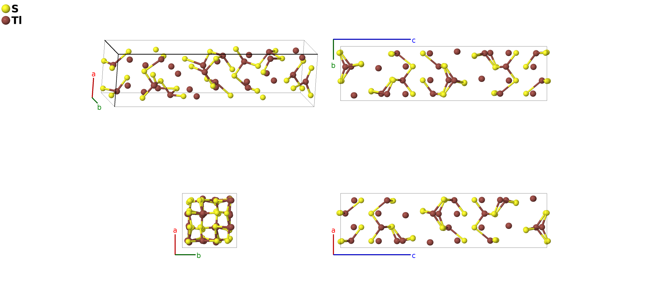 $\mathbf{B_{58}}$ | = | $- x_{9} \, \mathbf{a}_{1}- y_{9} \, \mathbf{a}_{2}+\left(z_{9} + \frac{1}{2}\right) \, \mathbf{a}_{3}$ | = | $- a x_{9} \,\mathbf{\hat{x}}- a y_{9} \,\mathbf{\hat{y}}+c \left(z_{9} + \frac{1}{2}\right) \,\mathbf{\hat{z}}$ | (8b) | Tl IV |