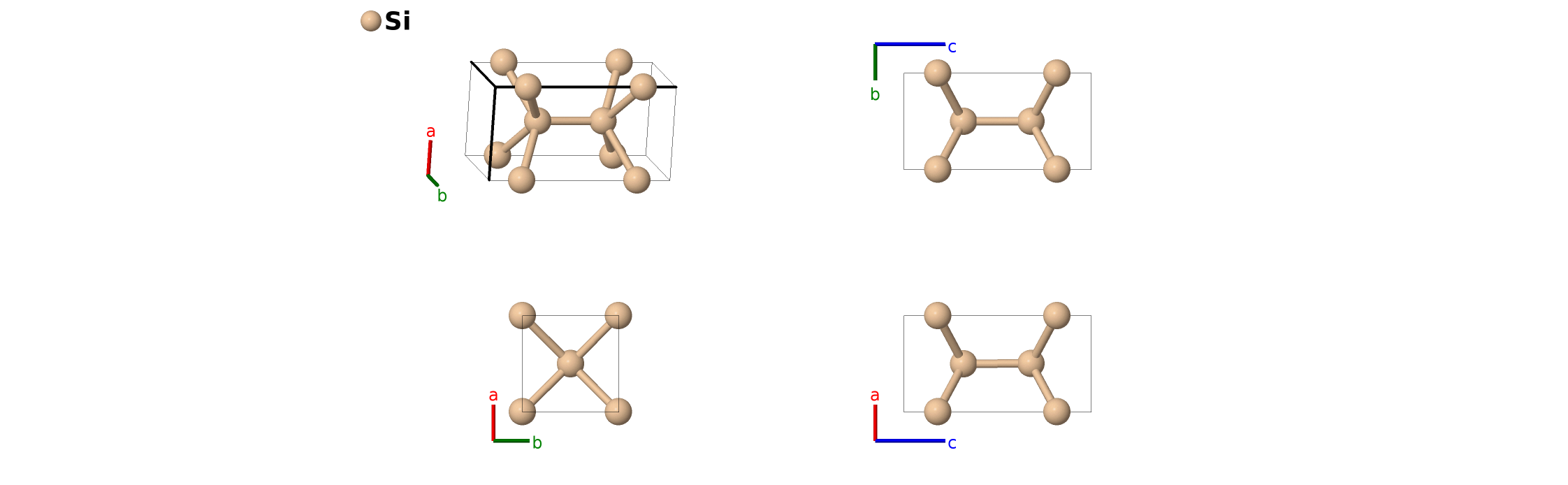 $\mathbf{B_{1}}$ | = | $z_{1} \, \mathbf{a}_{1}+z_{1} \, \mathbf{a}_{2}$ | = | $c z_{1} \,\mathbf{\hat{z}}$ | (4e) | Si I |